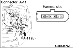 - Resistance between A-11 front combination lamp (position: LH) connector terminal No.3 and body earth
