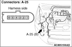 (1)Disconnect the connector, and measure at the wiring harness side.