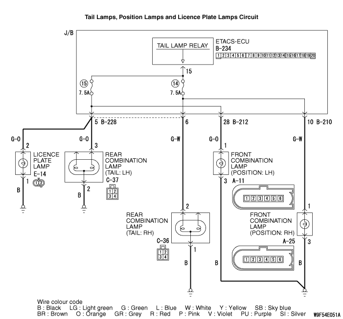 lamp or licence plate lamp>, B-212 <position lamp (LH)> and B-210 <position