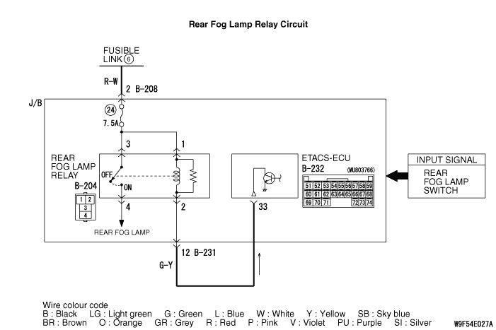 If the rear fog lamps (both right and left) do not illuminate, these input signal circuit(s) or the ETACS-ECU may be defective.