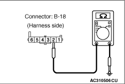 STEP 4. Check the wiring harness between B-18 fog lamp switch connector terminal No.2 and body earth.