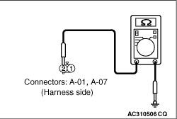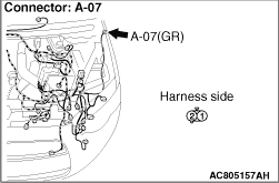 - Resistance between A-07 side turn-signal lamp (LH) connector terminal No.2