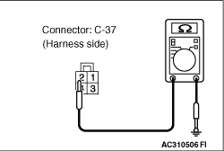 - Resistance between C-37 rear combination lamp (turn: LH) connector terminal No.2 and body