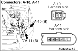 - Resistance between A-11 front combination lamp (turn: LH) connector terminal