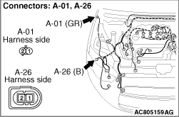 (1)Disconnect the connector, and measure at the wiring harness side.