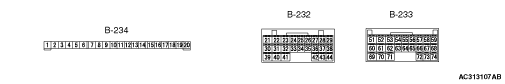 note B-234 (terminal numbers 1 to 20) cannot be measured as the ETACS-ECU is mounted on the junction block directly. The values are for reference only.