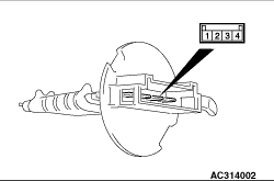 Between terminals 1 and 4 (MH)