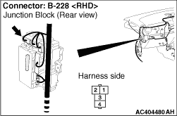 Prior to the wiring harness inspection, check junction block connector B-228 and intermediate