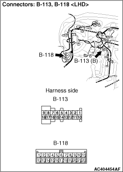 Prior to the wiring harness inspection, check intermediate connector B-118, and repair if necessary.