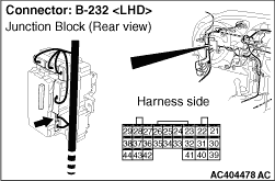 (1)Disconnect the connector, and measure at the wiring harness side. (2)Turn the ignition switch to the "ON" position. (3)Set the blower switch to the position other than OFF.