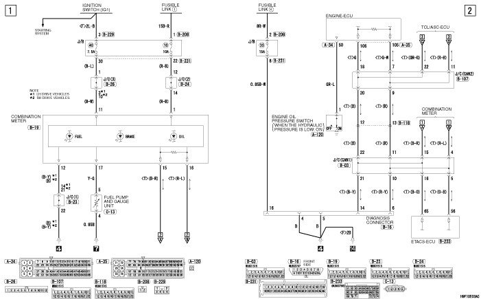 FUEL WARNING LAMP, OIL PRESSURE WARNING LAMP AND BRAKE WARNING LAMP <4G1>