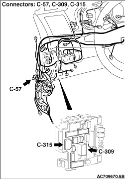 Prior to the wiring harness inspection, check the C-309 and C-315 ETACS-ECU connectors, and repair if necessary.