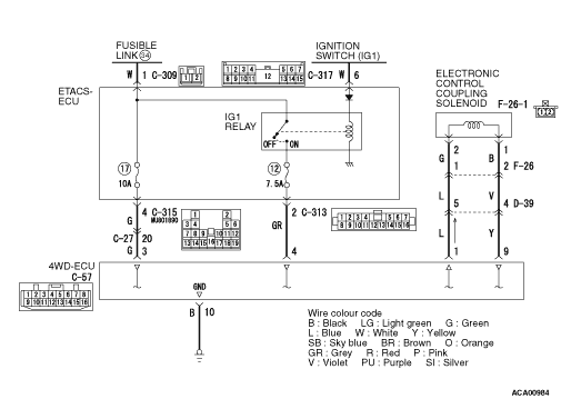 - Damaged harness wires and connector (Short to earth between 4WD-ECU and the electronic control coupling solenoid)