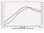 curve was fairly flat in the mid-range and increased sizably above 7000