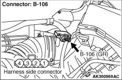 - Use special tool test harness (MB991709) to connect only terminal No. 1 and No. 4, and then measure at pick-up harness.