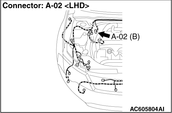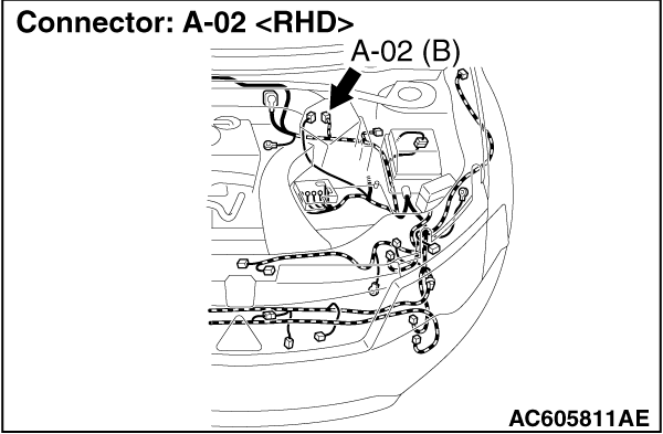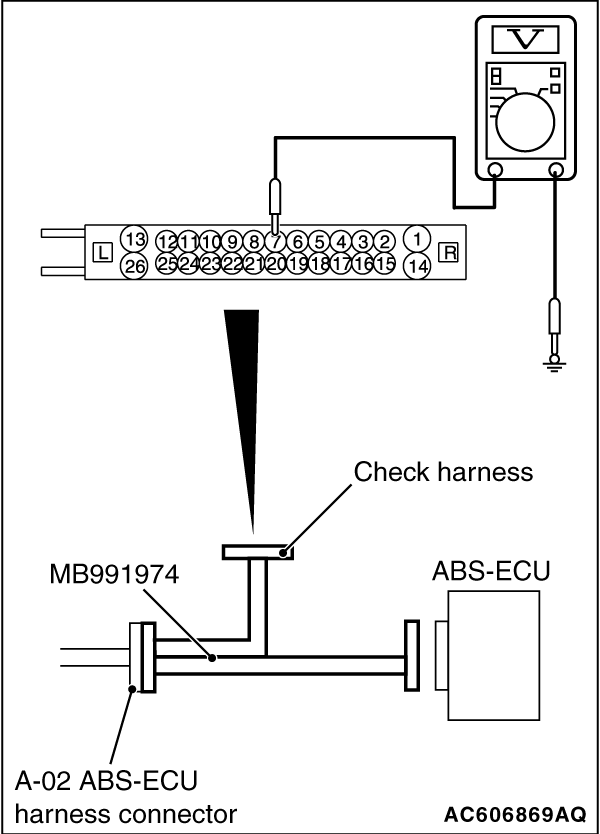 (1)Disconnect the ABS-ECU connector, connect special tool ABS check harness (MB991974) to