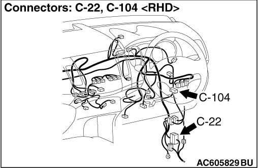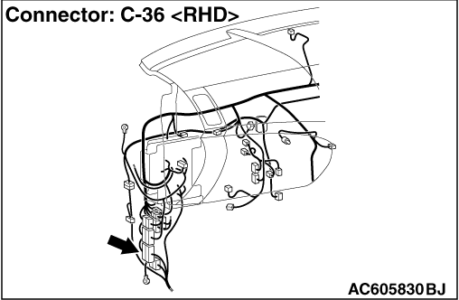 Prior to the wiring harness inspection, check intermediate connectors C-22 and C-36 <RH