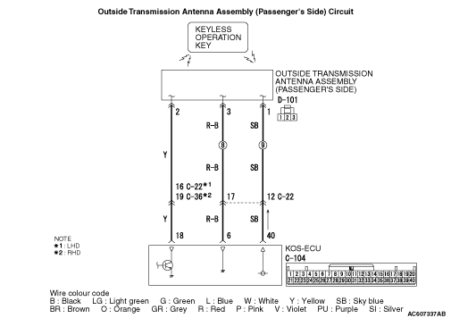 - Malfunction of the outside transmitter antenna assembly (front passenger’s