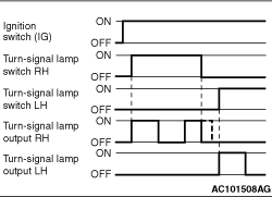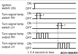 When the turn-signal lamp switch is ON (LH or RH) with the ignition switch is ON, the