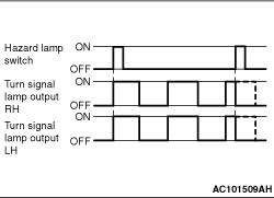 momentarily (0.4 second or less), ETACS-ECU turns ON the turn signal lamp output, and flashes