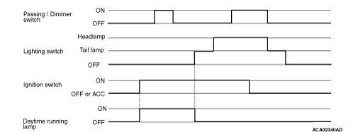 - The timing that the headlamp and tail lamp are automatically turned ON when the