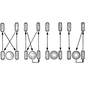 | Fig. 1: Common tire rotation patterns |