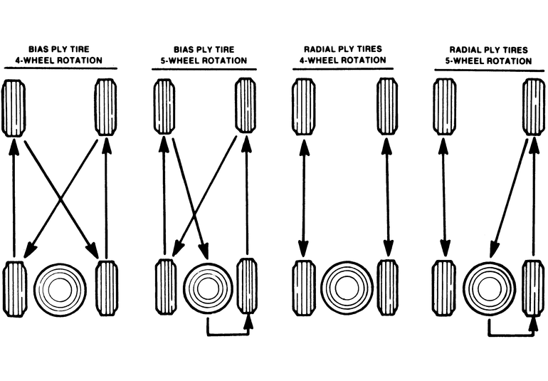 NOTE: When radials or studded snows are taken off the car, mark them, so you can maintain the same direction of rotation.