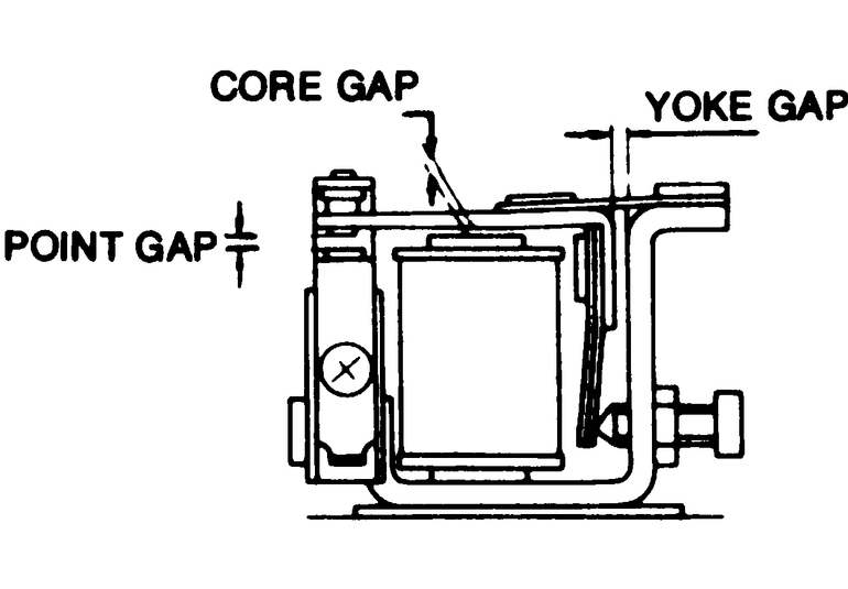 - Yoke gap: measure the clearance between the armature and the yoke. Adjust,