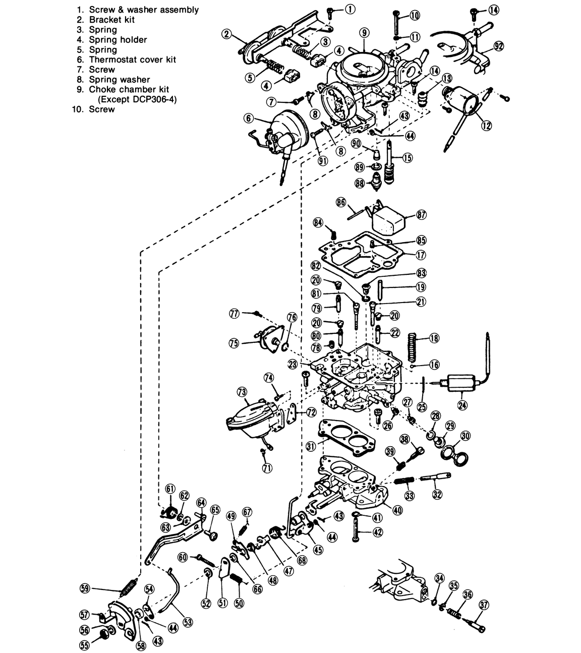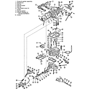 | Fig. 5: Components, 1980 DCP306–1, DCP306–3, DCP306–4 and DCP306–5 carburetors |