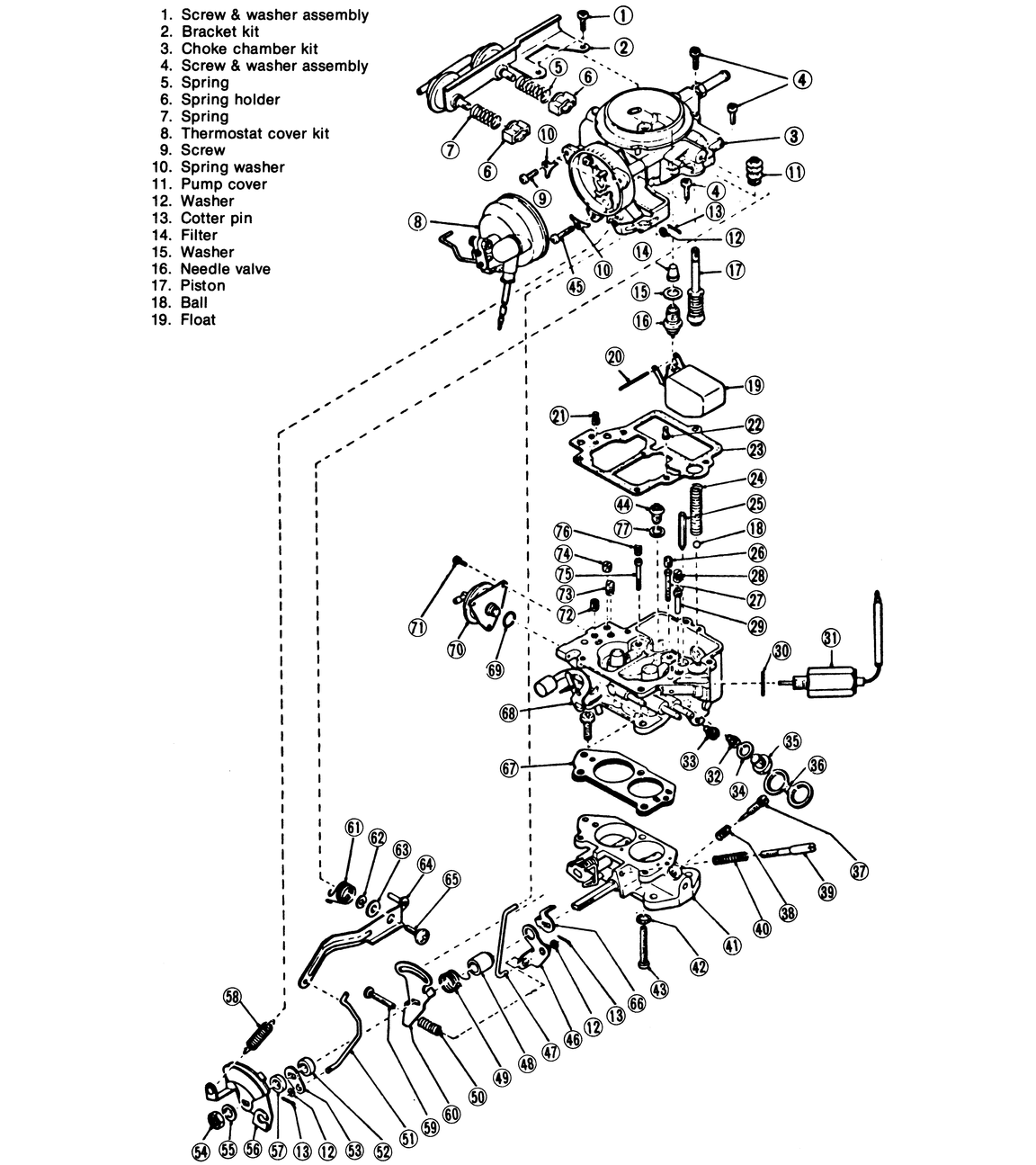 | Fig. 1: Exploded view ff–1 and 1300G carburetor |