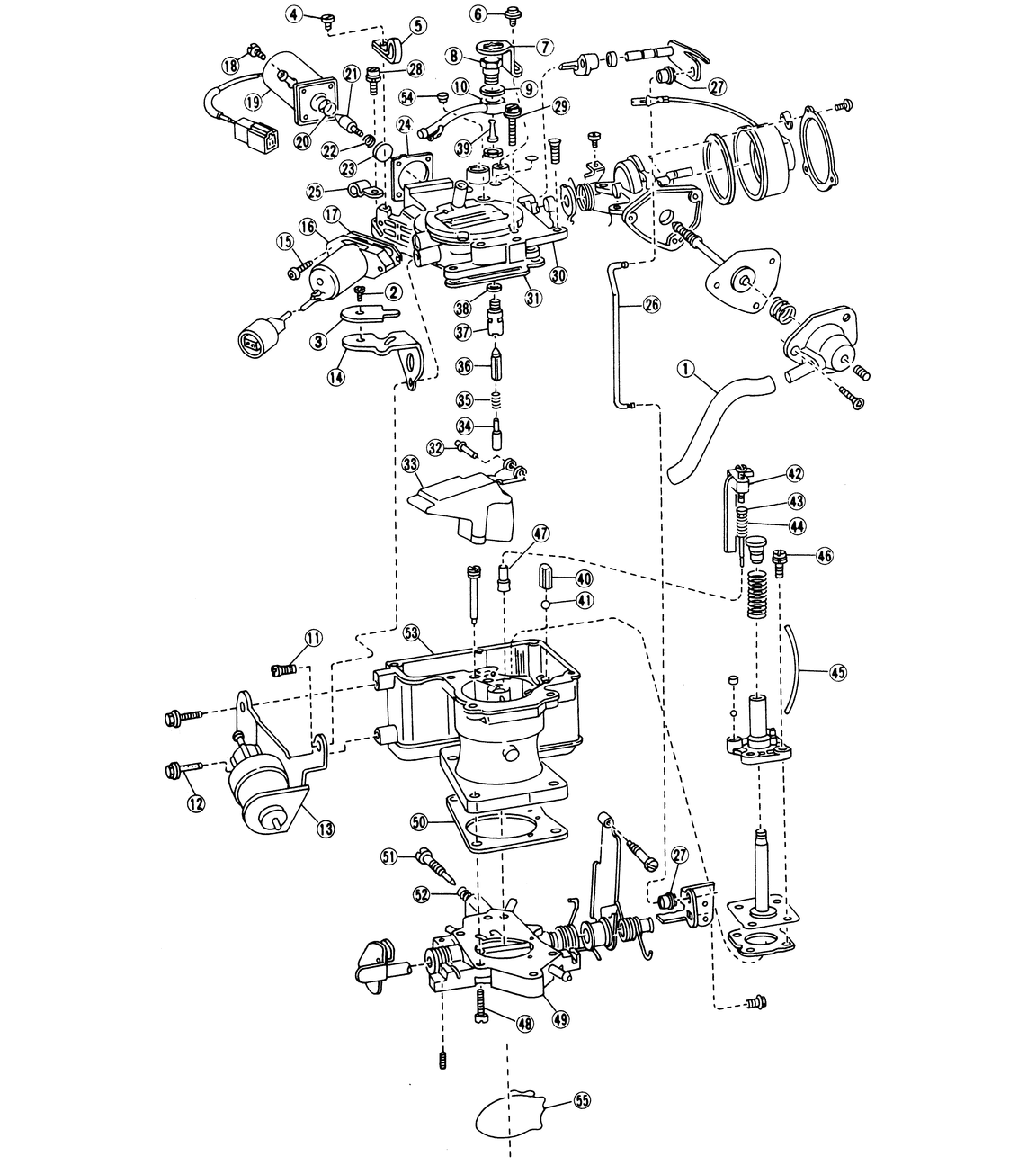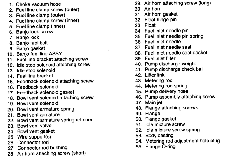 | Fig. 11: Components, 1983–84 Carter–Weber carburetor |