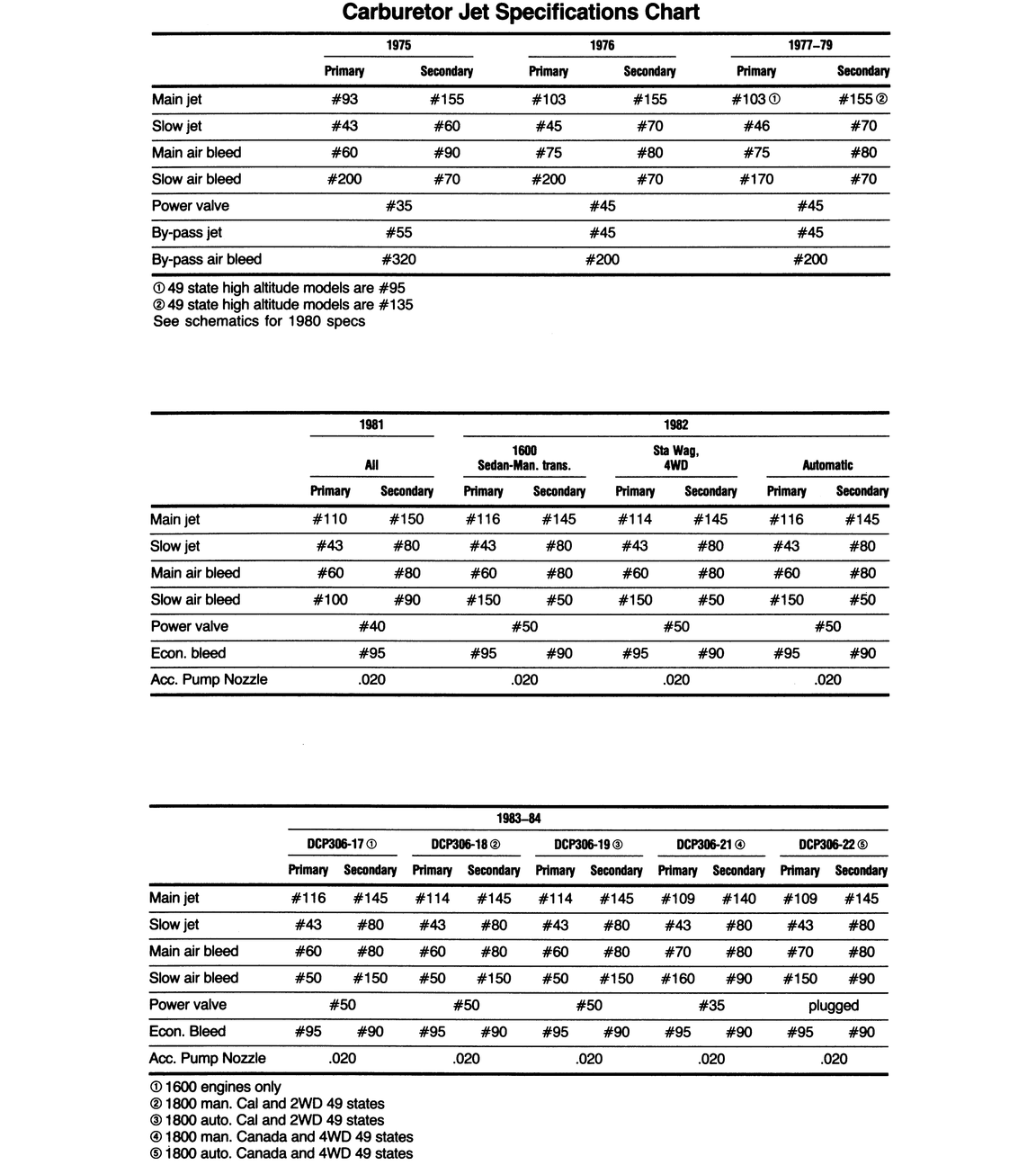 | Fig. 4: 1980 DCP306–1, DCP306–3, DCP306–4 and DCP306–5 carburetors |