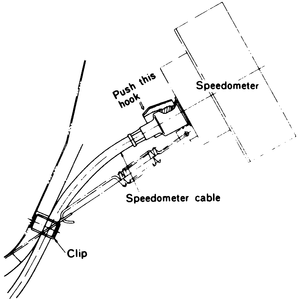 Fig. 1: Push on the hook to disengage the speedometer cable