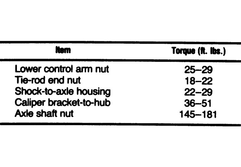 | Fig. 5: Front bearing and hub torque specifications — 1976–84