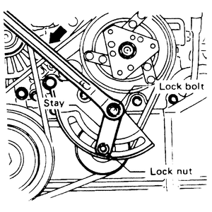 | Fig. 7: Loosen the belt adjuster bolt