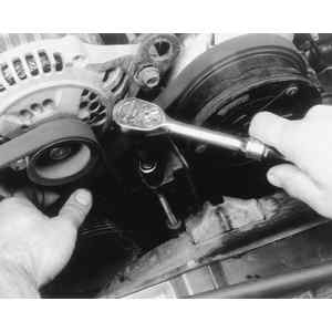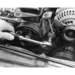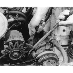 | Fig. 1: Check the accessory belt tension by pressing and measuring the amount of deflection |
