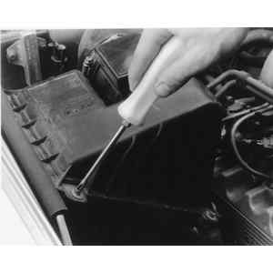 | Fig. 7: Unsnap the clips that fasten the air cleaner