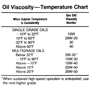 Oil viscosities should be chosen from those oils recommended for the lowest anticipated temperatures during the oil change interval.