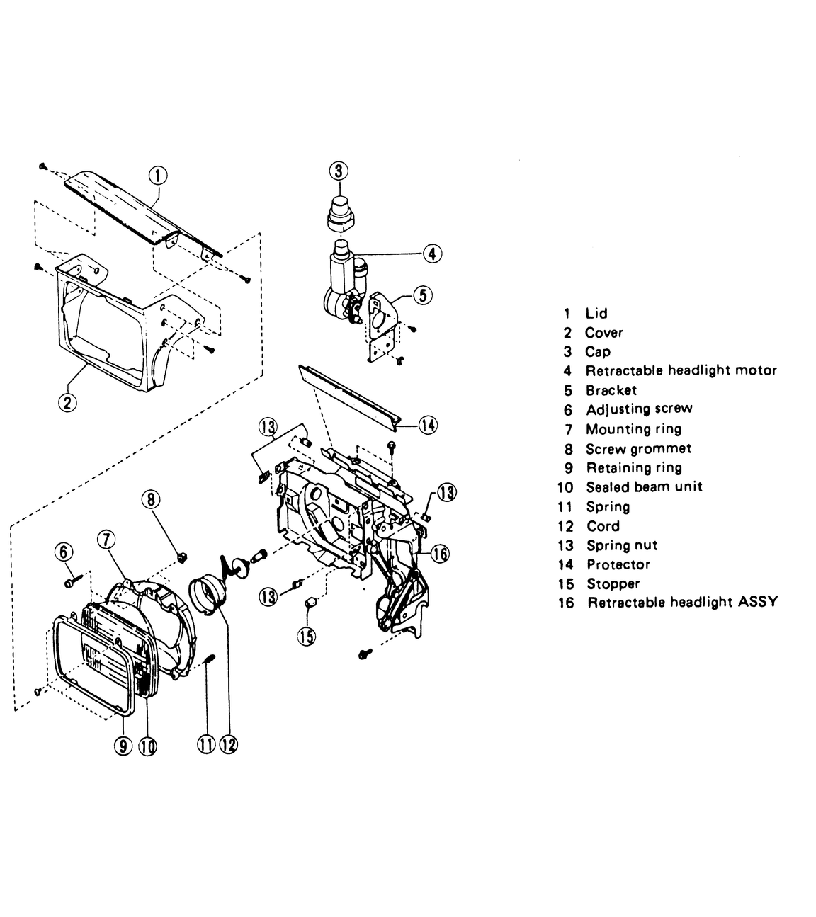 - Remove the bolts that retain the headlight assembly and motor, and remove
