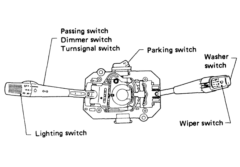 On all models except the XT, the combination switch contains the switches for the turn signal, headlight and wiper/washer functions of the vehicle. The XT models do not control the headlights from this switch, but retain the other functions. The stalk assemblies are mounted to a main switch body located on the steering column. Once the assembly is removed the individual switches can be removed. On all models except the SVX, there are 2 stalk controls; on the SVX, there are 3 stalk controls.