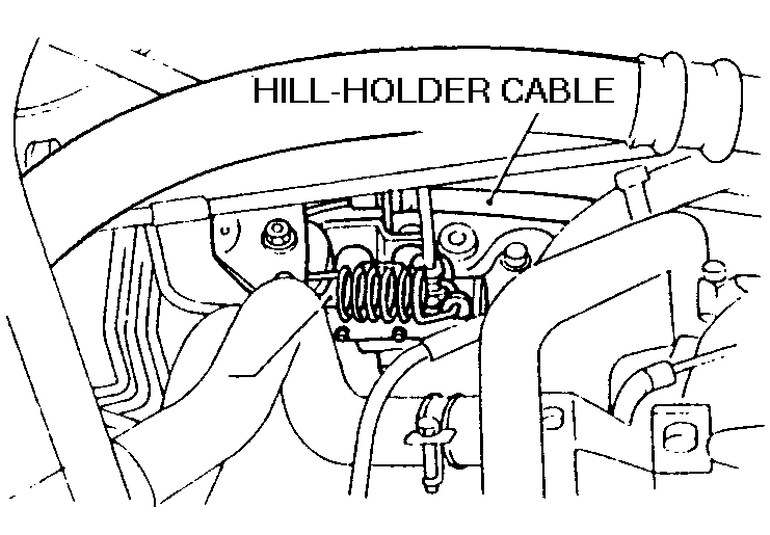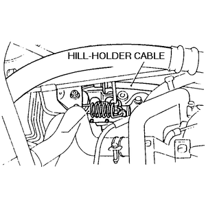 | Fig. 7: Disconnect the Hill Holder cable — except turbocharged vehicles |