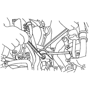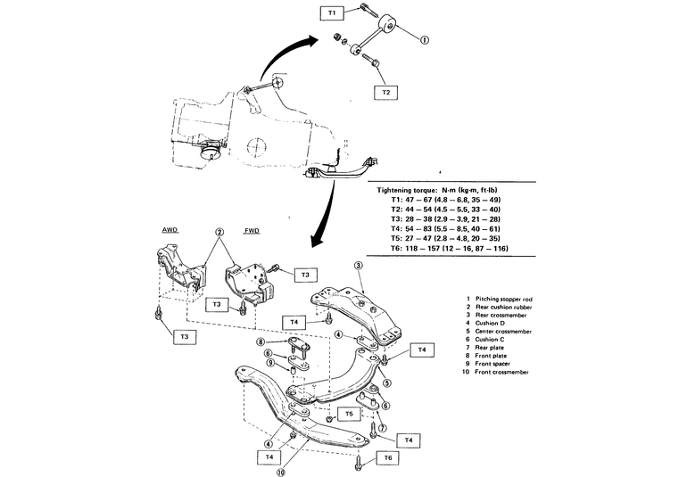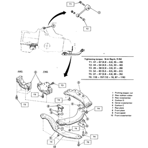 | Fig. 8: Removal and installation of the pitching stopper bracket — turbocharged model shown |