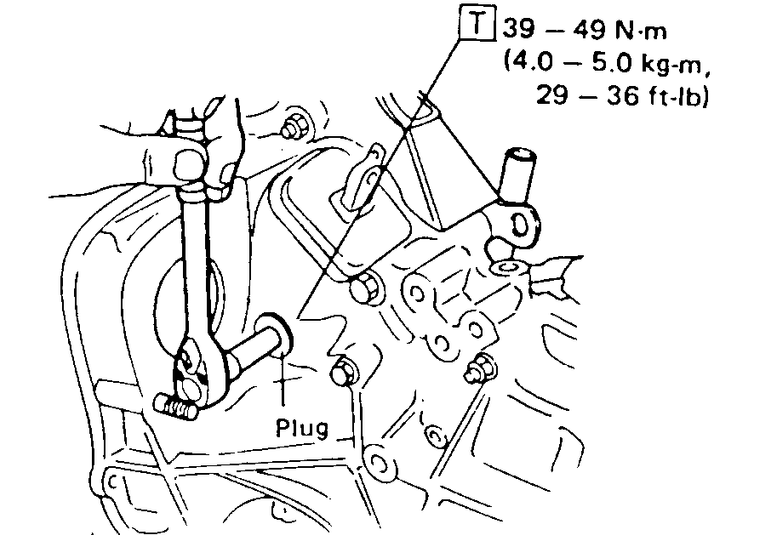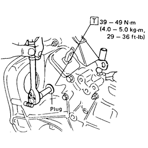 | Fig. 29: Disconnect the gear shift rod and stay from the transaxle |