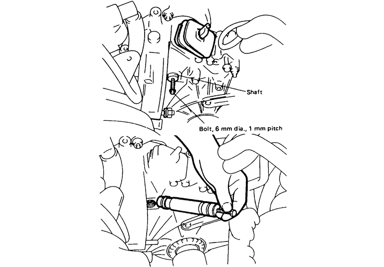 | Fig. 11: Using a 6mm bolt to remove the release lever shaft |