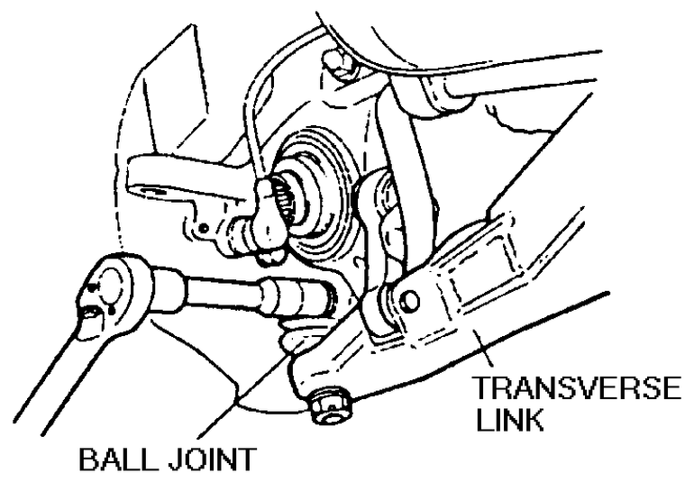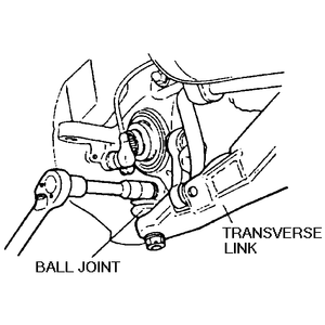 | Fig. 14: Removal and installation of the transverse link from the transaxle housing |
