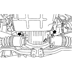 | Fig. 12: View of the upper transaxle-to-engine bolts |