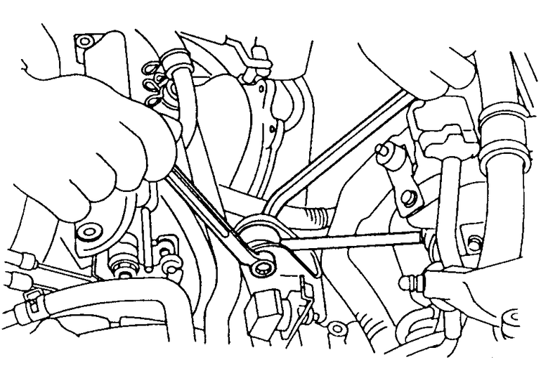 NOTE: Before attaching the special engine support tools, connect the adjuster to the buffer rod assembly on the right side of the engine.