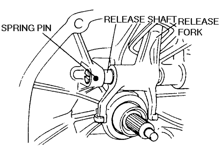 NOTE: Ensure the cutout portion of the release fork shaft contacts the spring pin.