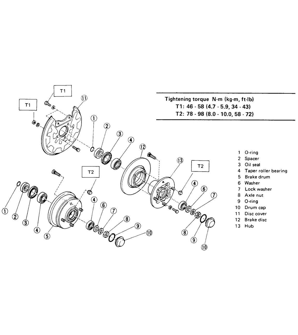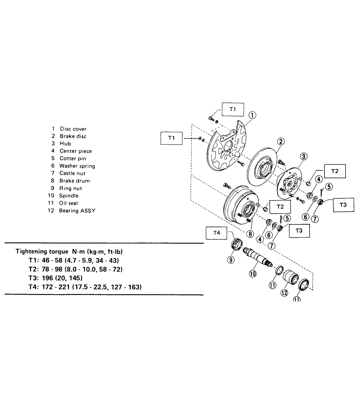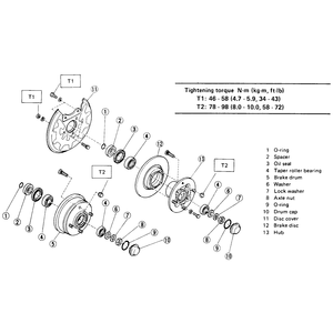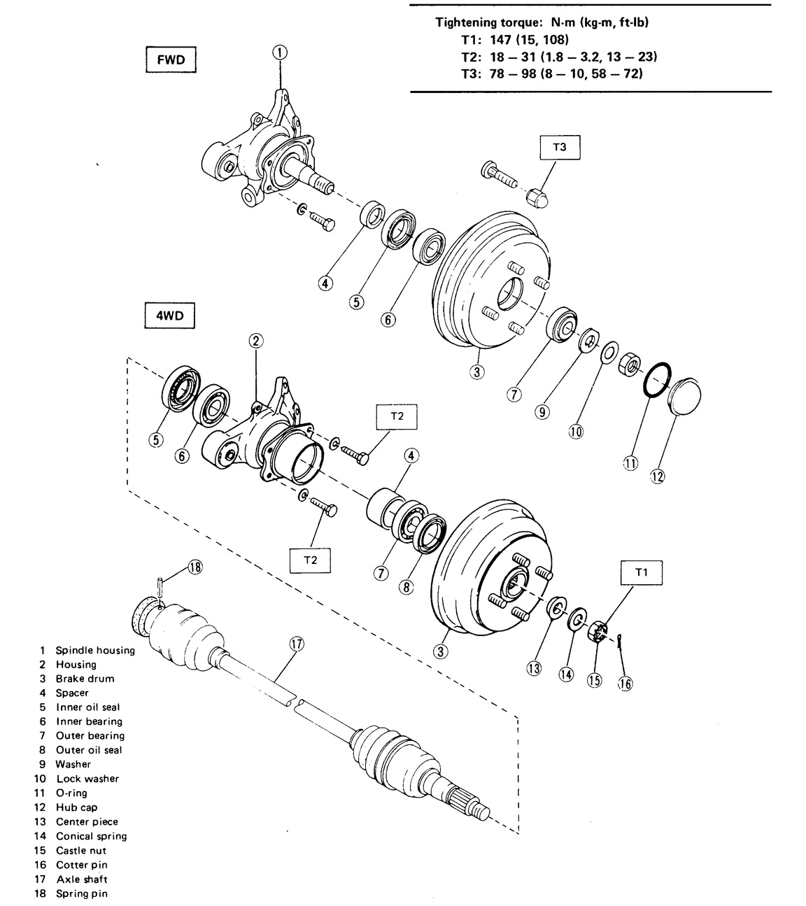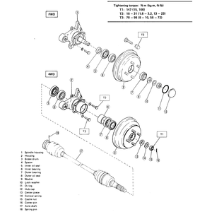 | Fig. 2: 4WD rear brake assemblies — Sedan, Coupe, Loyale, XT, Wagon and Brat |