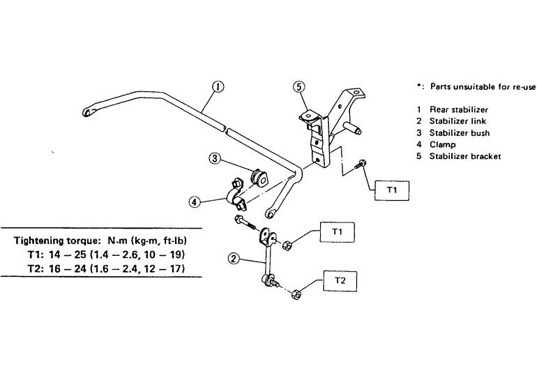 - Stabilizer-to-crossmember — 15–21 ft. lbs. (21–28